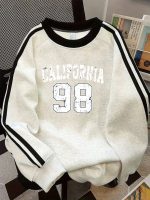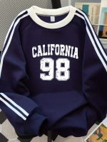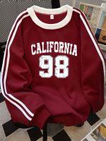 Home Sporty Sweatshirts Machine Washable – Women’s California Lettering & Number 98 Vertical Stripe – Crew Neck Sweatshirt – Long Sleeve Raglan Sweater Top – Casual Fall Winter Blouse for Casual Attire