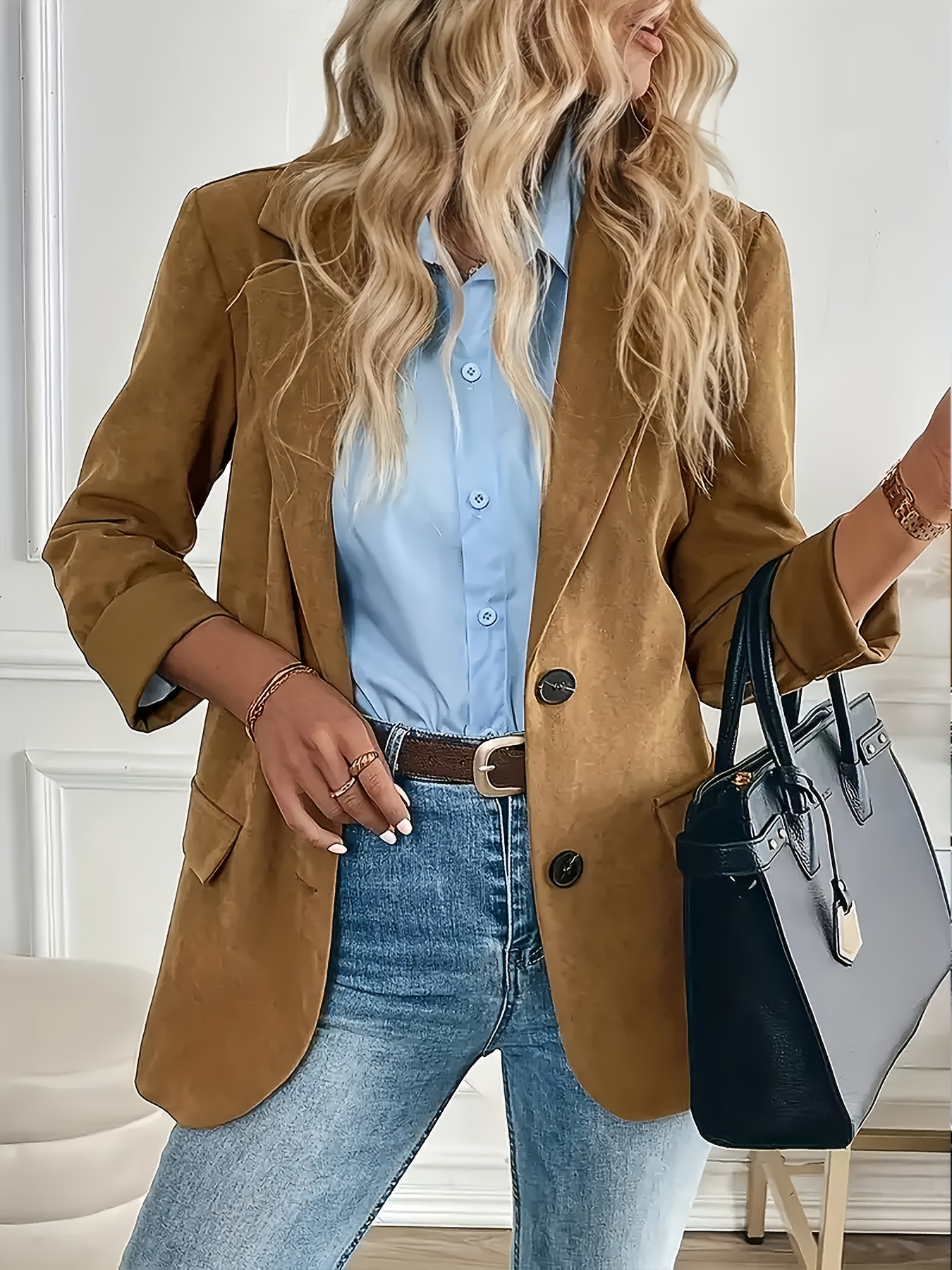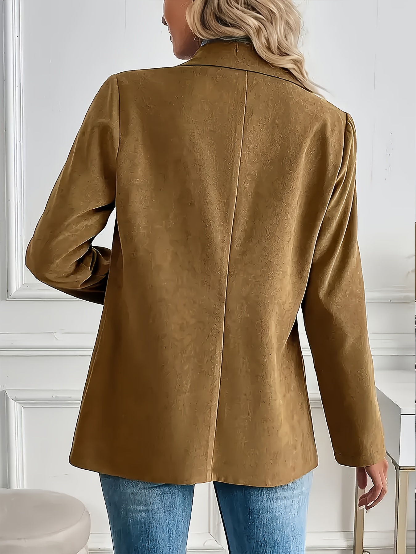 Long Loose-fit Suit Jacket with a Fashionable Collar, 1pc