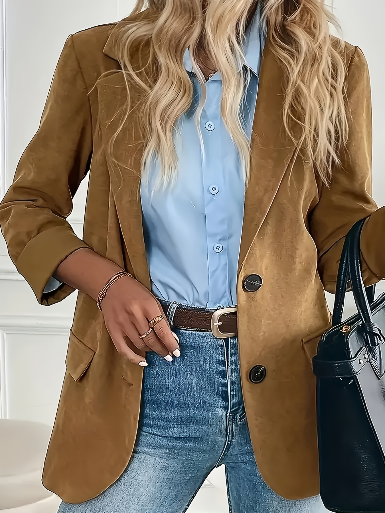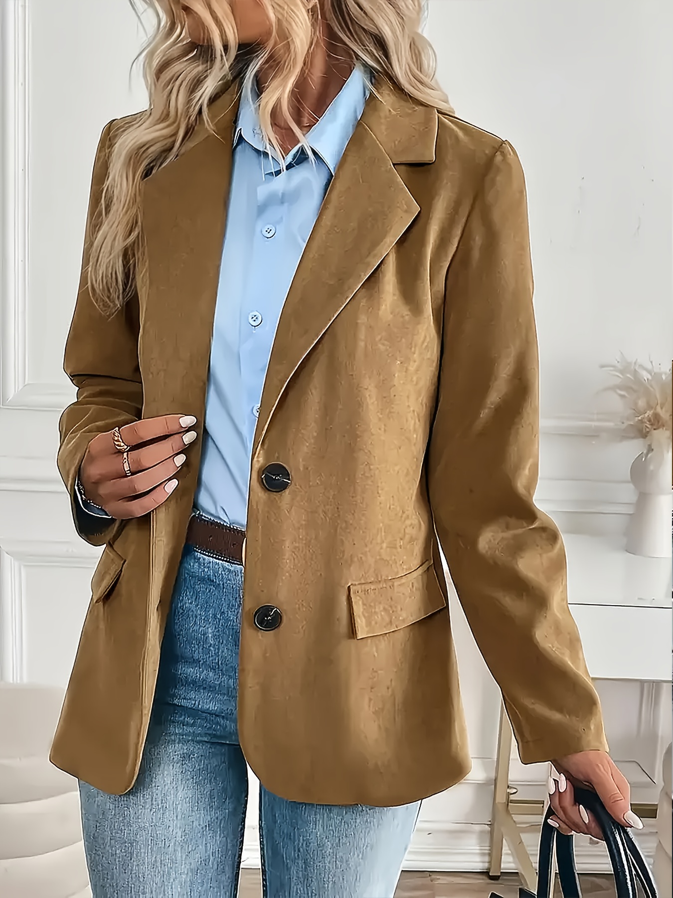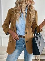 Elegant Corduroy Long Sleeve Blazer for Women | Solid Color, Regular Fit, Single Button Placket, Suitable for All Seasons