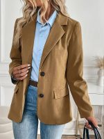 Elegant Solid Color Single-Button Long Sleeve Blazer for Women, Suitable for Teachers’ Autumn Attire (Belt Not Included) ZLLZ