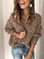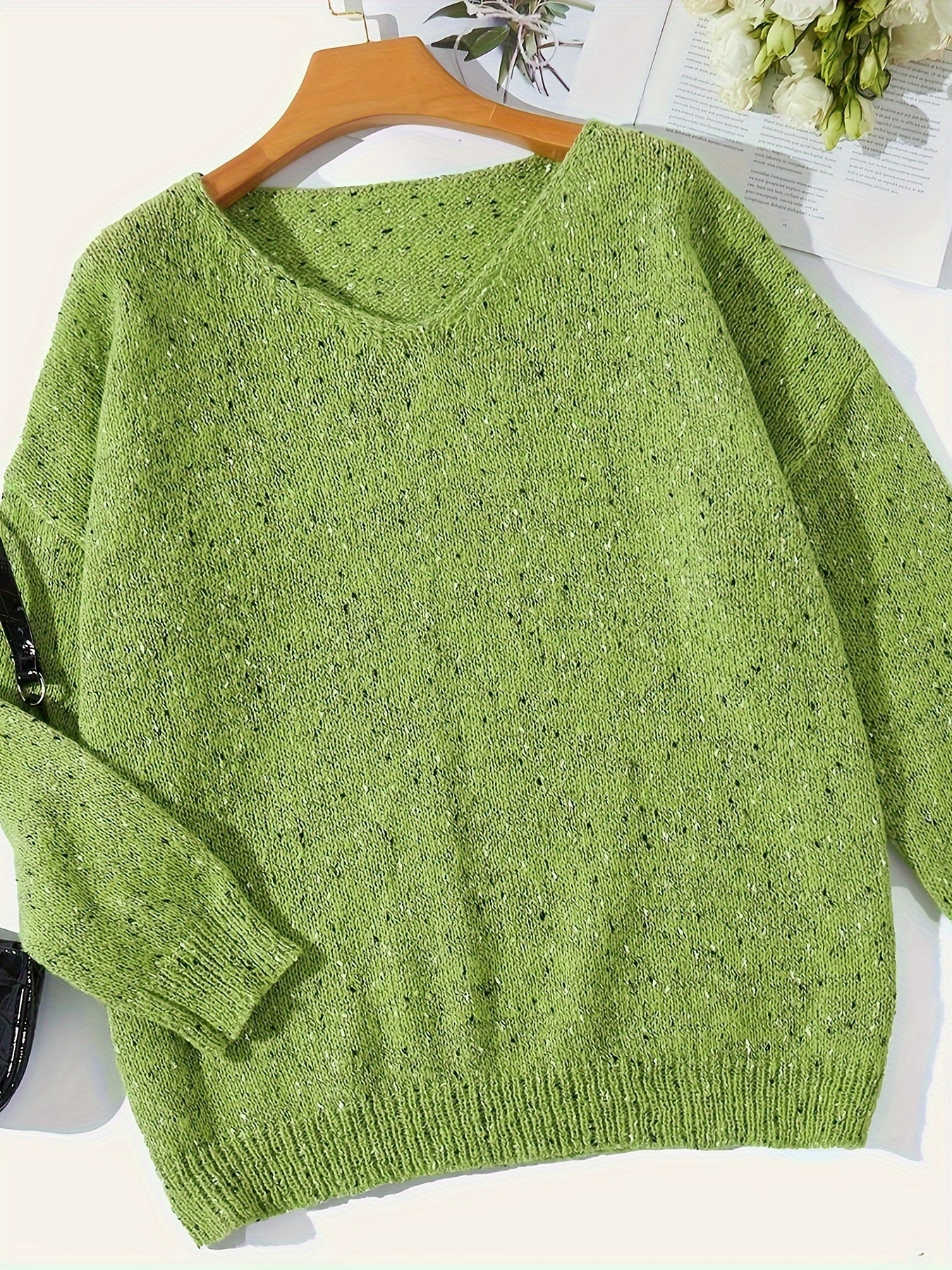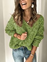 Women’S Casual V-Neck Sweater – Long Sleeve, Loose Fit, Green Camouflage Pattern, All-Season Comfort, Soft & Stylish for Casual Attire, Versatile Clothing | Vneck Sweater | Construction, Sweater Dress