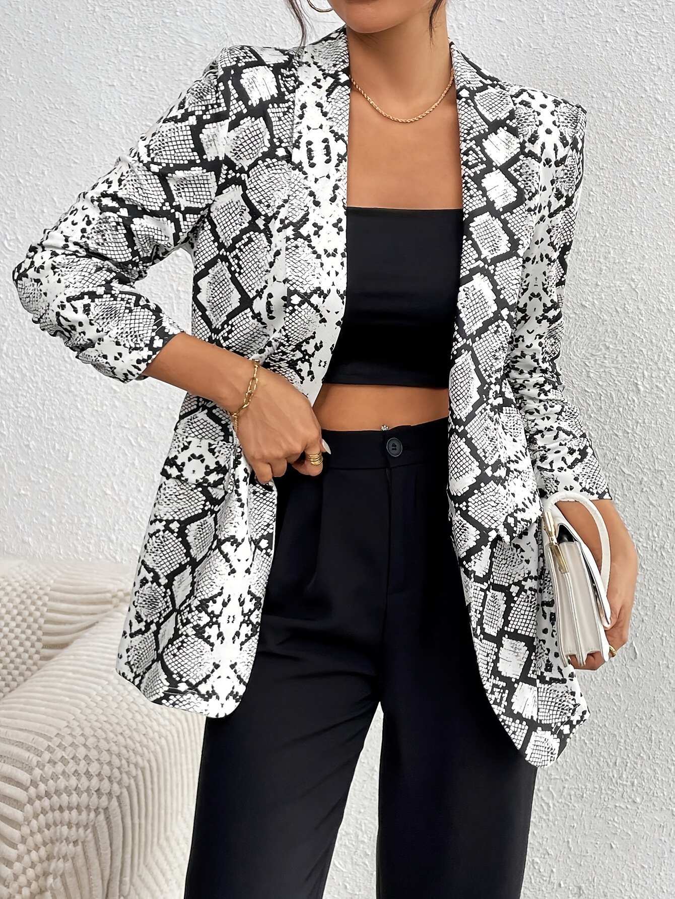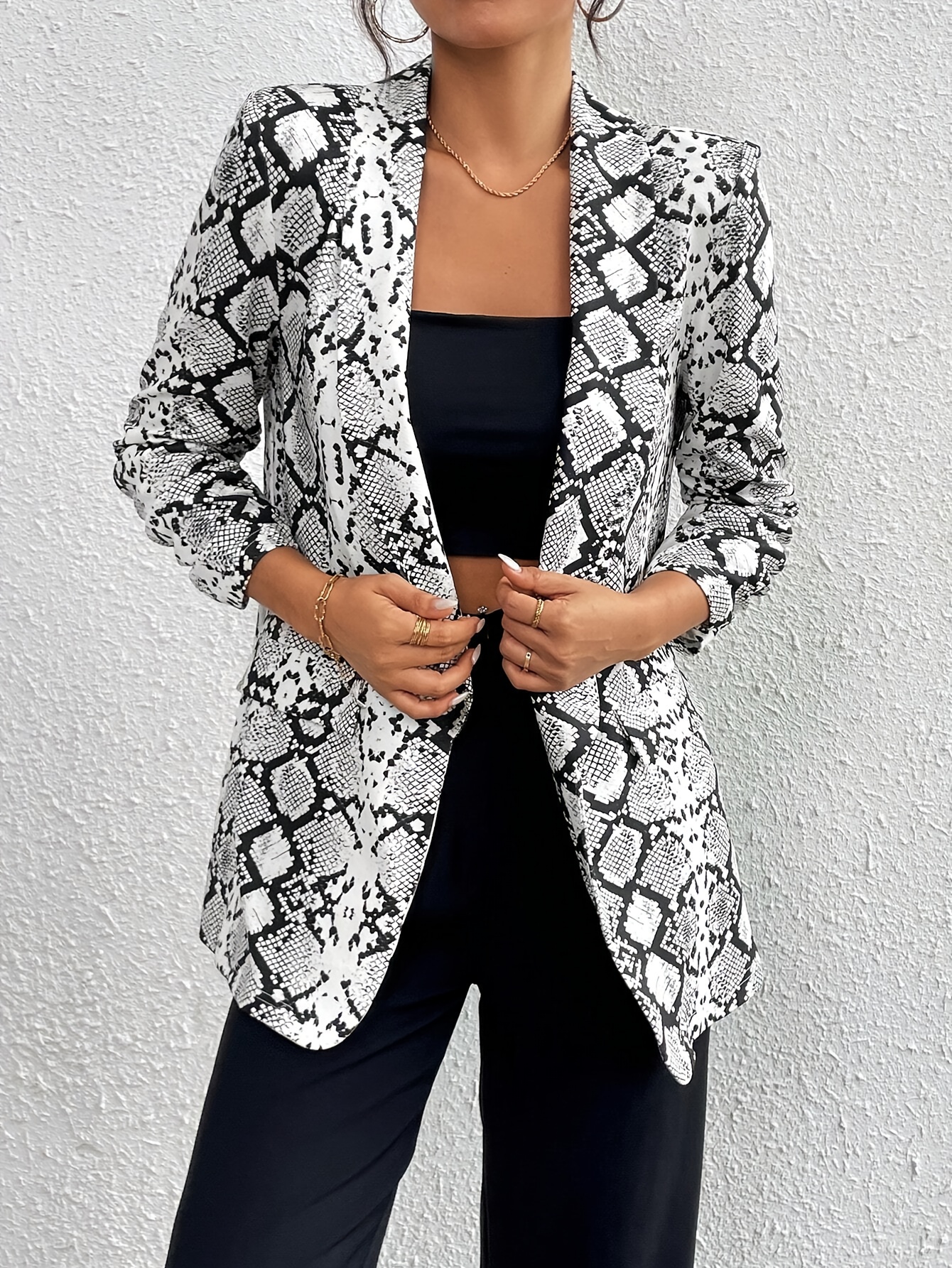 Women’s Springu002FSummer Casual Snake Print Lapel Blazer, Autumn Halloween Costume, Fall Women’s Coat, Autumn Jacket, Winter Coat, Women’s Overcoat, Winter Coat, Women’s Suit Jacket